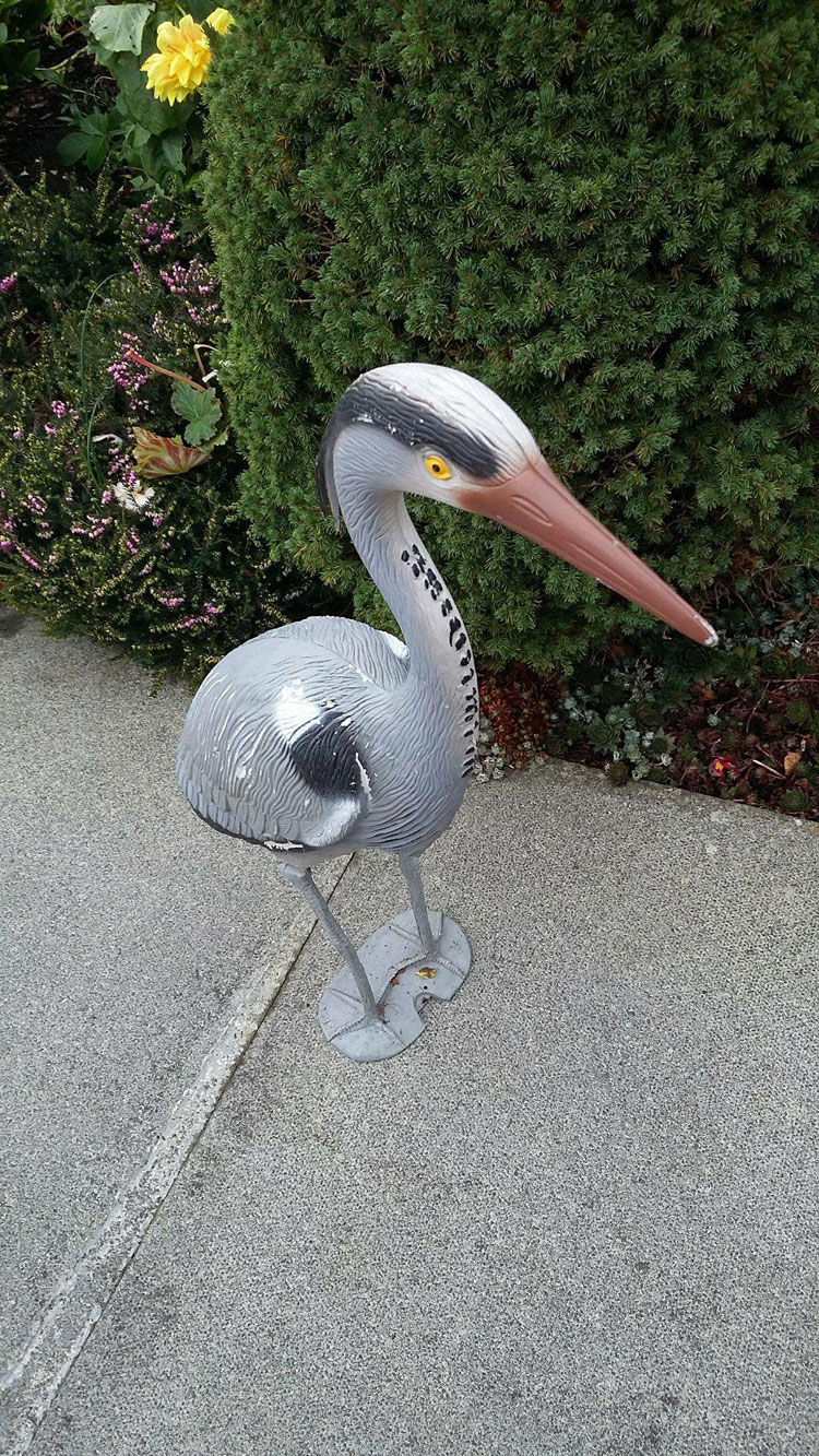 Trying to fly south for the winter, this wee feathered friend could go far, But to get where he wanted right quickly, he should have just travelled by car. If you recognise this lonely wee birdie, help him find his way back to his abode, He hasn't gone far that we know of and can be found in Allandale Road.